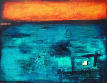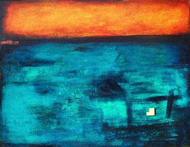 This painting, “Home” started out as the painting on the far left (above). As you can see, not much of the original underpainting is left, and the canvas was turned horizontally rather than vertically. The layered underpainting did help create a jumping off point. I started scraping layers of paint on top of it, and added layers of glazes for depth. I was encouraged by my friend Robyn to do a larger version of ‘Home,’ as the first one was just 6 x 12.” So this canvas seemed to be a good fit.I changed up the colors a bit, but I’m really pleased with how it came out.