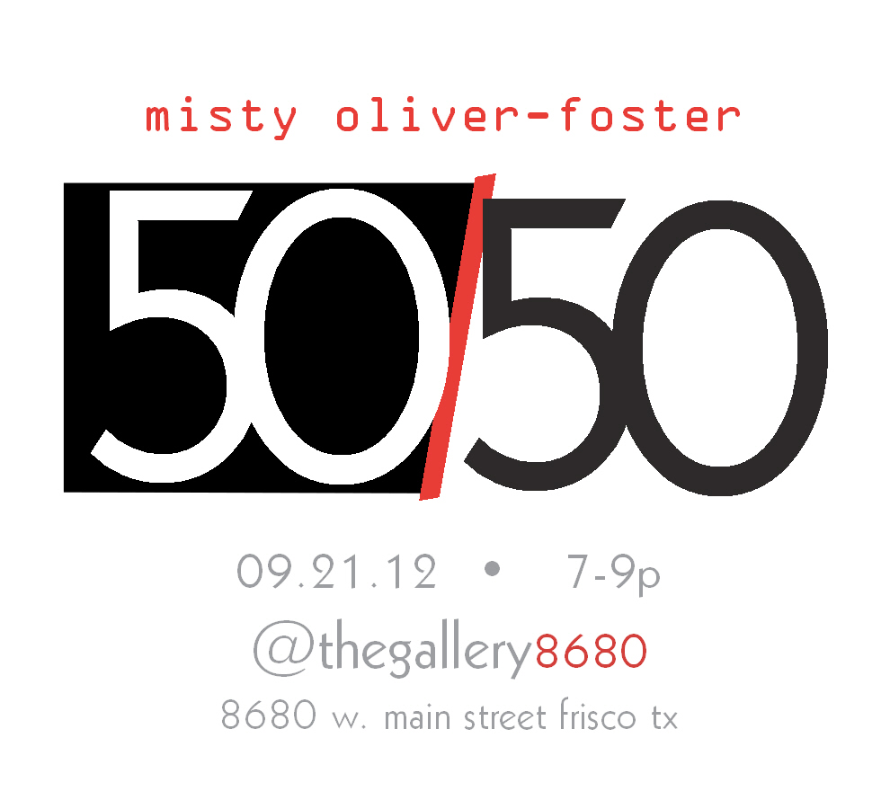 I’m trying to keep most of the show under wraps until the opening. If you can’t make the show, I’ll have it posted here on the blog on Saturday (09/22/12). Click the 50/50 link at the top of the page.