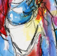 About half are works on paper, and the other half are paintings. The largest work is 30 x 22″ and the smallest work is 8 x 8″. There are quite a few figurative works in the show, which may seem out of line with the work that is currently on my web site. However, I have always really loved figure drawing. (Ok, maybe not my first day of Figure Drawing 101, when I was too embarrassed to actually look around my drawing board to see the nude male model. But soon, I began to love the endless possibilities of drawing the figure, with all its angles and curves and lines). I still attend sessions with live models as often as I can. It gives me a great excuse to play with color and line. These figures are going to show up in new work, too, so keep an eye out.